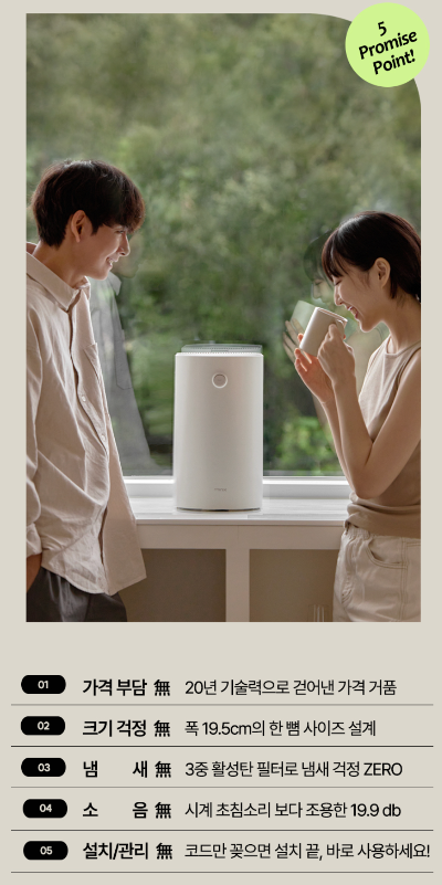 특히 냄새, 소음, 디자인, 성능, AS, 후기에 이르기까지 모든 항목에서 높은 점수를 받을 수 있는 제품이라 자부할 수 있습니다.