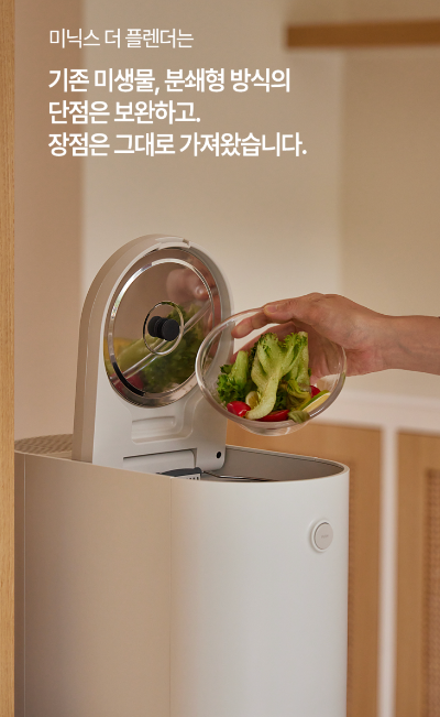 “미생물, 분쇄형 여러 음식물 처리기들이 있지만, 눈에 보이지 않는 배관 막힘에 대한 리스크를 늘 떠안고 있어, 마음이 편하지 않았습니다. 미닉스의 더 플렌더 덕분에 모든 부분이 우리 집 생활 패턴에 맞아 선택하게 되었습니다.”
